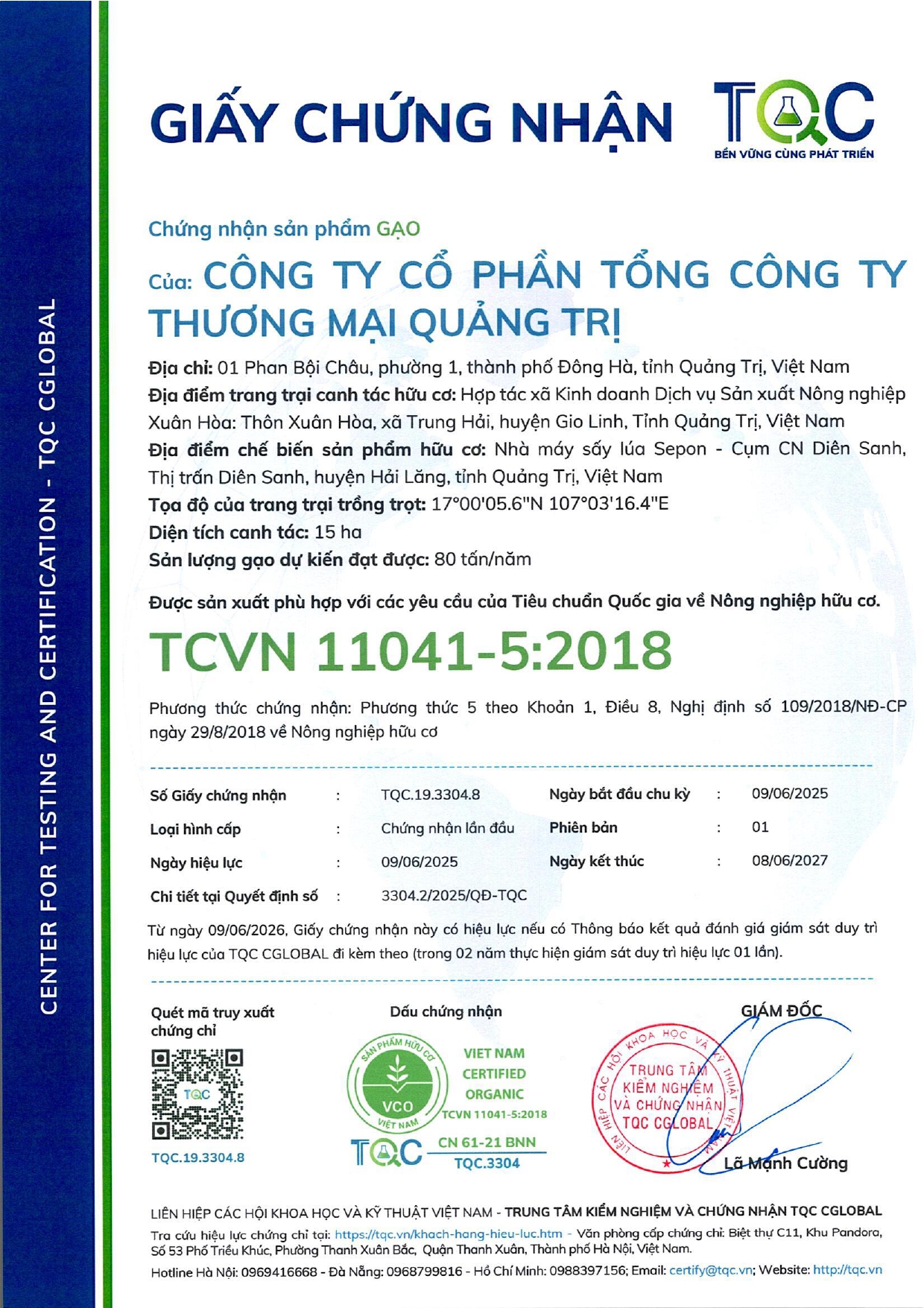 3. Đạt giấy chứng nhận hữu cơ của TQC theo tiêu chuẩn TCVN 11041-5:2018