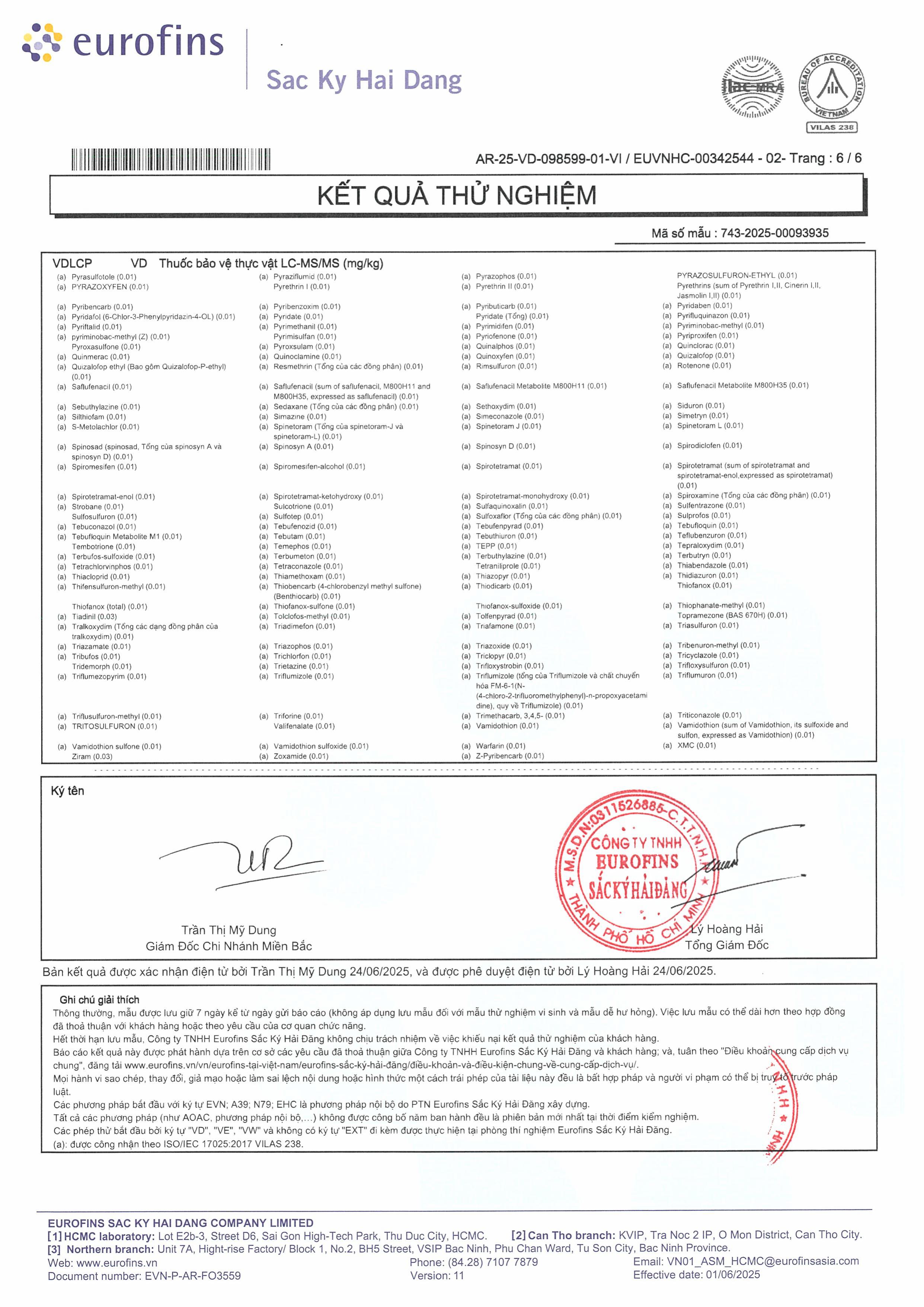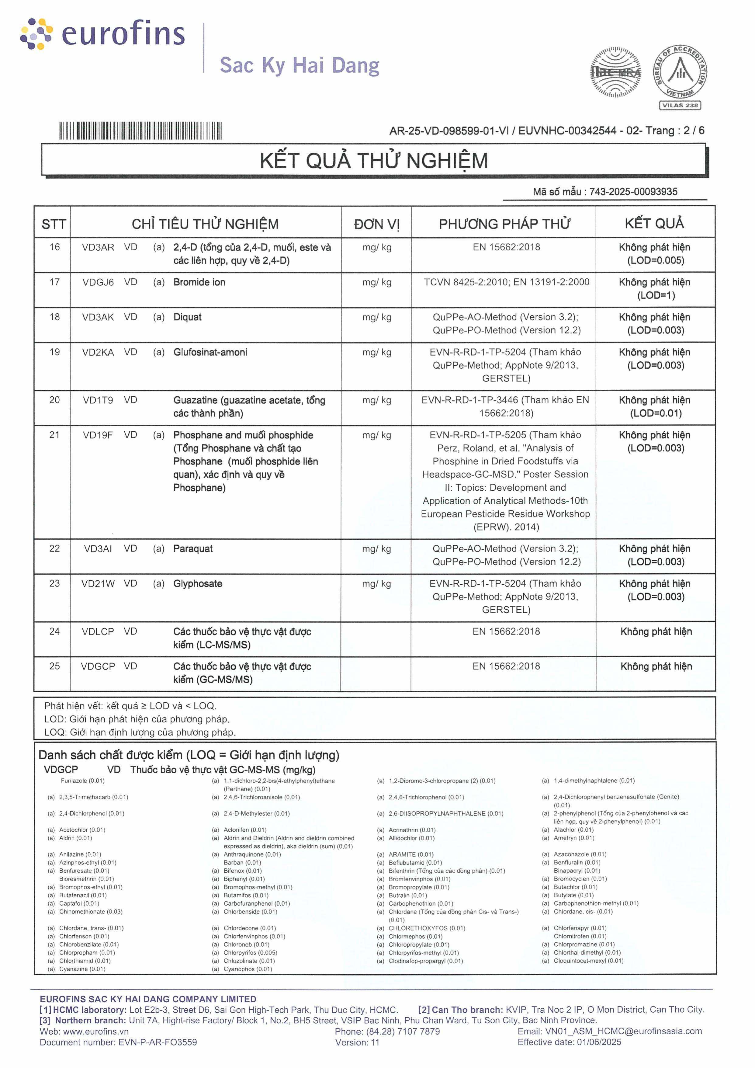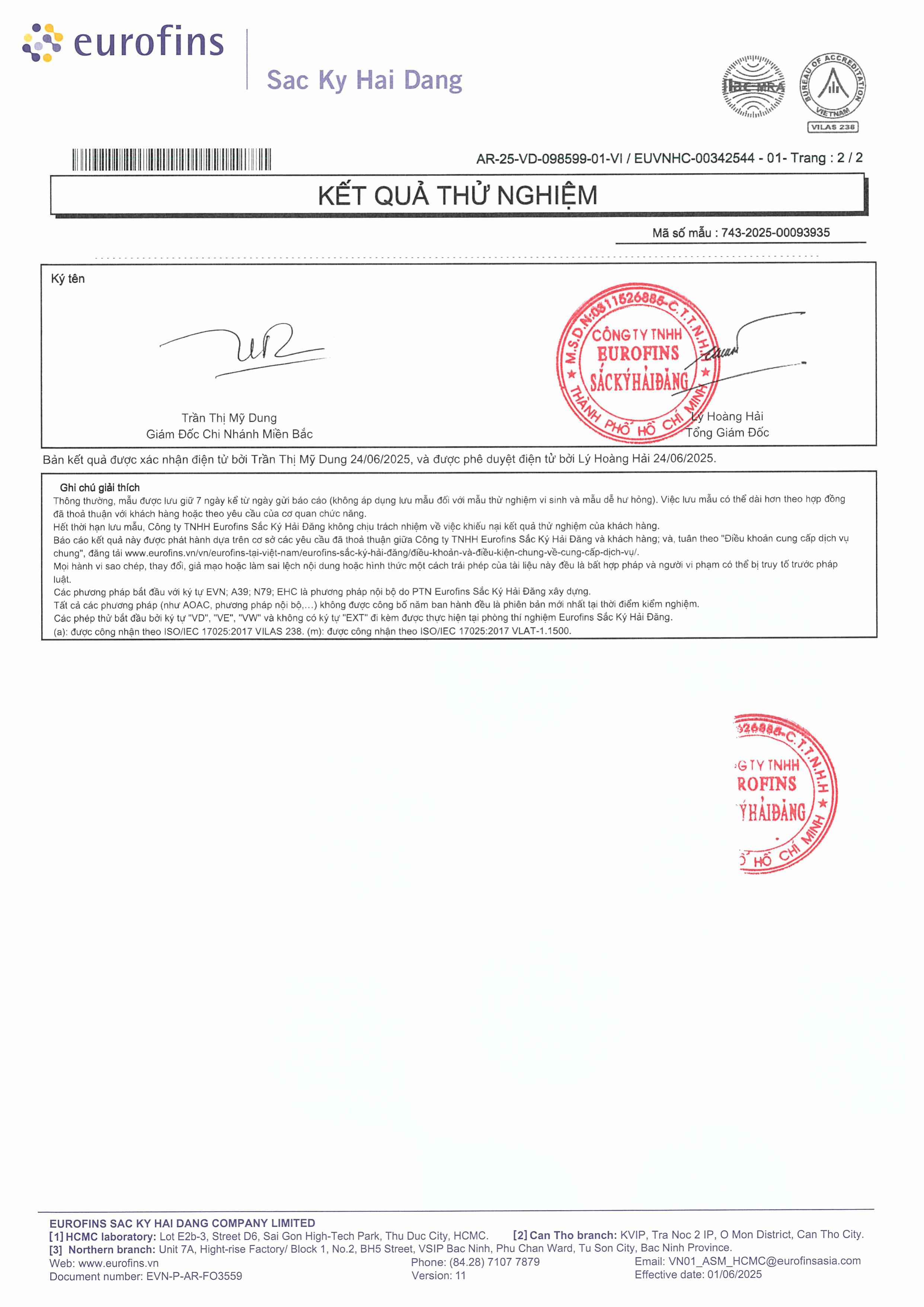 (Xin vui lòng xem Kết quả thử nghiệm của Eurofin ở file đính kèm).